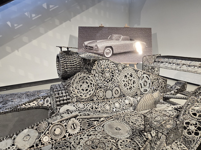 | Skulptur "F1-2000" aus der Ausstellung "Giganten aus Stahl". Die Skulptur ist ein Unikat, gefertigt aus tausenden von Einzelteilen | Skulptur "F1-2000" aus der Ausstellung "Giganten aus Stahl". Die Skulptur ist ein Unikat, gefertigt aus tausenden von Einzelteilen |