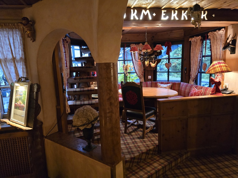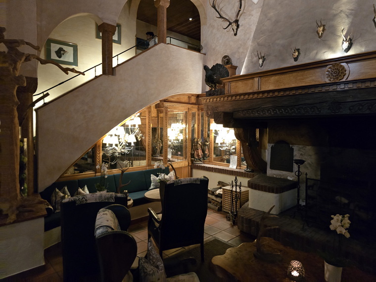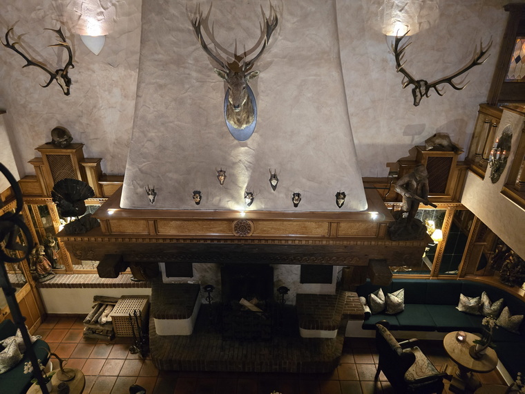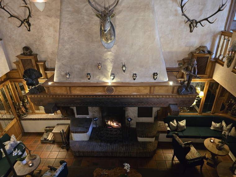 Jagdhaus Glashütte Geweih und Gehörnkamin | Jagdhaus Glashütte Eckkammer Erker |