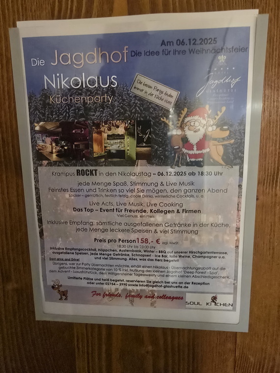 Jagdhaus Glashütte Nikolaus 6.12..2025 Küchenparty | Jagdhaus Glashütte Hirschterasse mit Sonne |