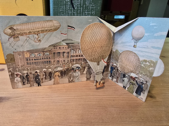 1909 Frankfurt Airship Pop-Up Balloon Ascension Mechanical Postcard