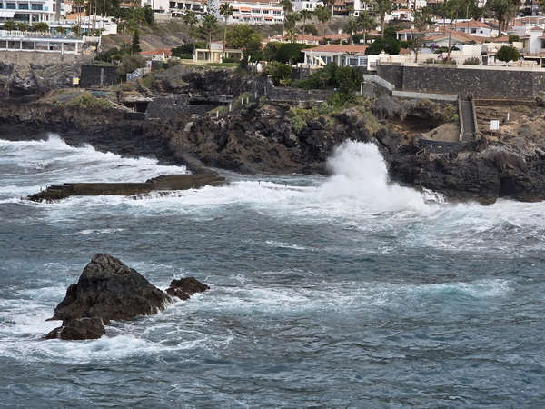 | Charco de Isla Cangrejo sehr hohe Welllen | Charco de Isla Cangrejo Wellenwarung Meerschläge bis 9 m |