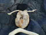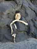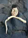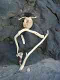 zurück Azorenbilder : Beachart : Entstehung eines Strandkunstwerks mit Holztreibgut und Lavabrocken am Basaltfels