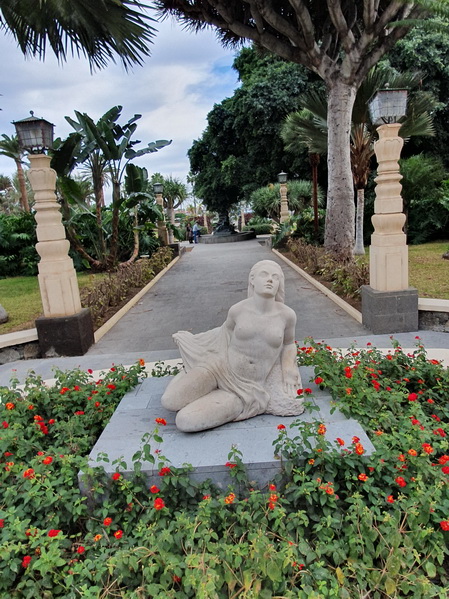 Der Park verdankt seinen Namen dem letzten Guanchen-König "Doramas" welcher gegen die spanischen "Besetzer" kämpfte und letztendlich unterlag. Eine Skulptur hier im „Parque Doramas“ erinnert an den Moment seiner Niederlage, als er über eine Felsklippe in den Tod stürzte.