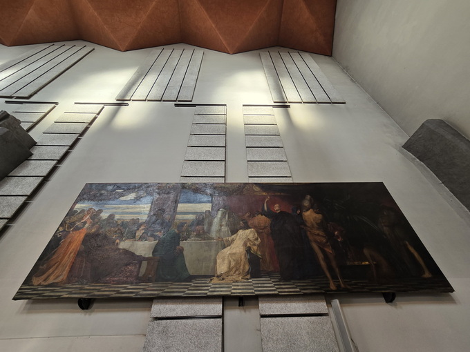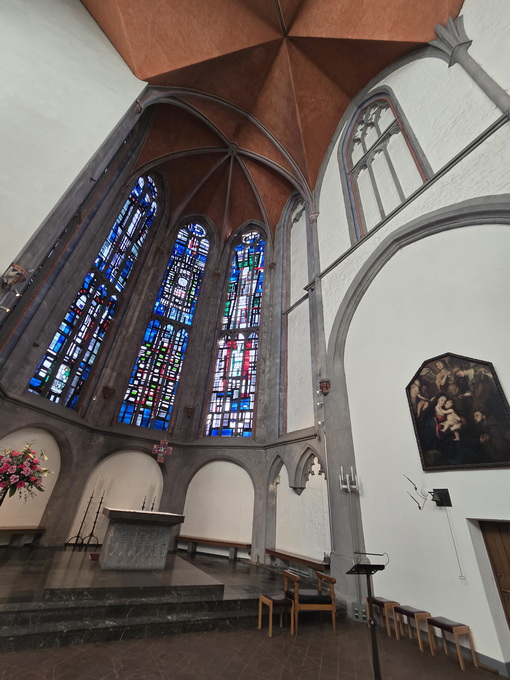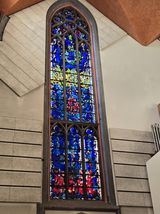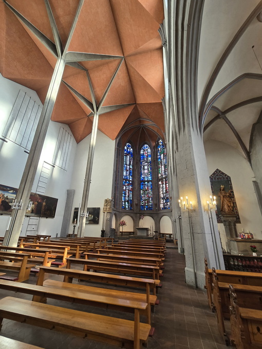 katholische Kirche mit gotischen und modernen Elementen.