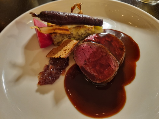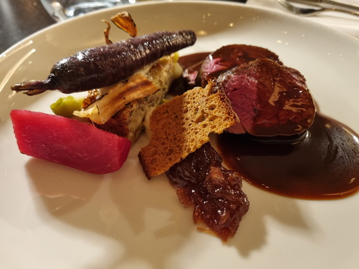 Hotel Kasteel Bloemendal Pilze mit der Suppe | Limburger Hirsch Spitzkohl Sauerbraten vom Hirschrücken und Wildsauce |