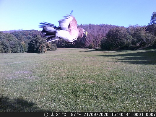 jezz eichelhäher mit Eichel auf der Wildcamera | fahrbarer Hochsitz |