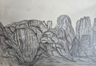Kapsunion Küste Bleistiftskizze | KlösterBerge Meteora Bleistiftskizze |