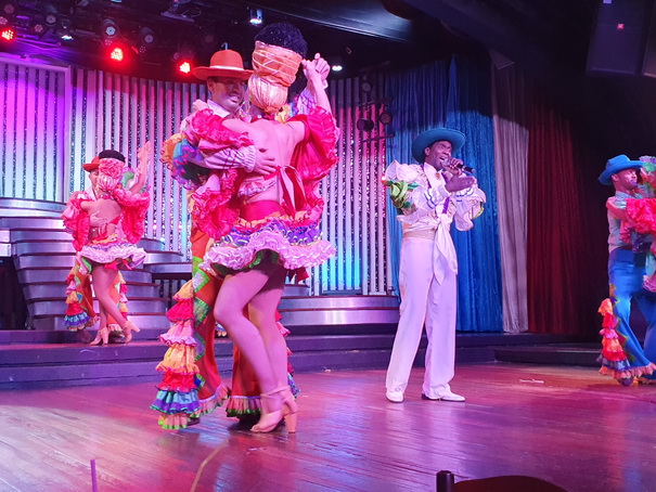 | Pariser Kabarett Das Pariser Kabarett bietet die große Show "Cubano, Cubano" an. Es ist eine Verschmelzung der indoamerikanischen, hispanischen und afrikanischen Kultur, die zur kubanischen Kultur geführt hat. Jeden Tag von 21.00 Uhr bis 2.00 Uhr beginnt die Show um 22.00 Uhr und danach ab 12.00 Uhr können Sie tanzen lernen. Wir laden Sie auch zum Abendessen in ein Hotelrestaurant Ihrer Wahl ein, um sich anschließend im Cabaret zu vergnügen. Essen Sie im eleganten Restaurant "Comedor de Aguiar" oder im Buffetrestaurant "La Veranda" oder genießen Sie kreolisches Essen im Restaurant "La Barraca". Sie können auch im Pariser Cabaret dinieren. |