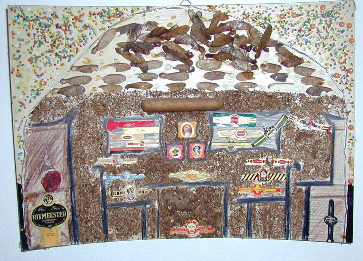 Zigarrencollage Collage mit Banderolen + Zigarren + Tabak