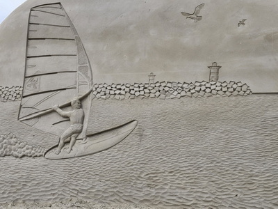 Sandbilder Windsurfer vor Leuchtturm | Sandbilder Windsurferwelle |
