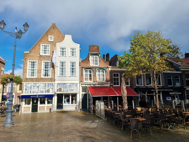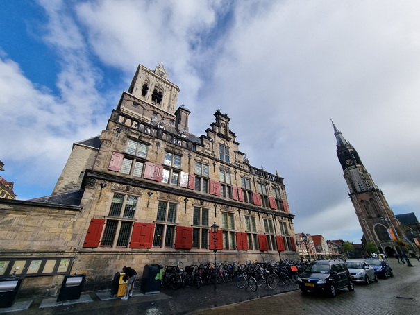 Delft Grachten + Kirchen Stadhuis Delft mit Marktplatz + Cafes | Delft Grachten + Kirchen Porzelanladen |