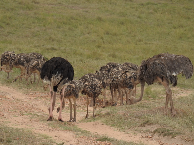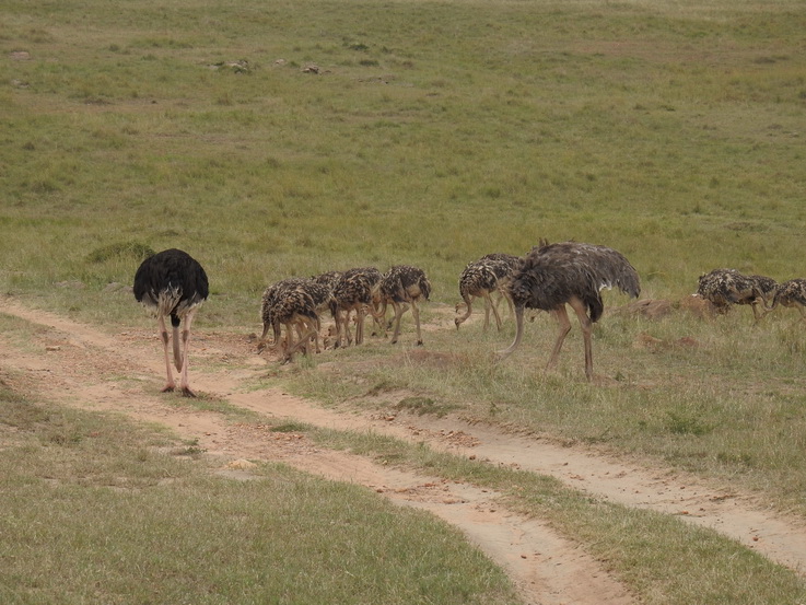 Masai Mara Buni Vogel Strauss Familie Mit 16 Kücken | Mara Buni Ostrich Family with 16 Chiks |