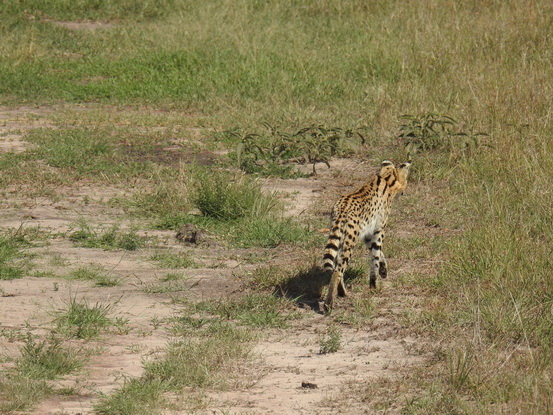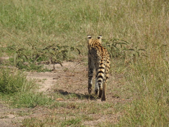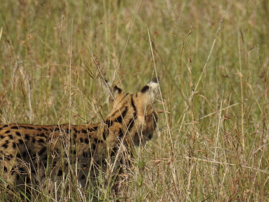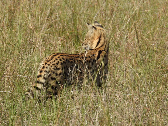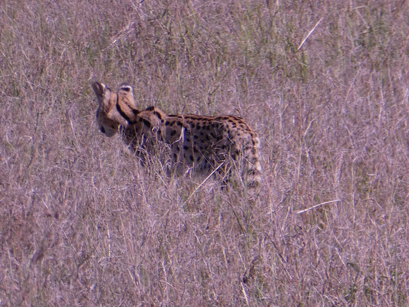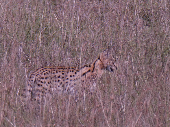 natürlich nicht vorhanden. Es handelt sich um eine große, getupfte Katze mit sehr großen Ohren, einer kleinen Schnauze und einem kurzen Schwanz. Die Trächtigkeit dauert 67-77 Tage, und die ein bis vier Jungtiere werden blind, mit sehr kurzem Schwanz und Ohren geboren. Die Jungtiere sind in langem Gras, Dickicht oder Felsspalten versteckt und können häufig bewegt werden. Sie werden mit 1 Jahr selbständig. Die Geschlechtsreife wird mit 2 Jahren erreicht und die Tiere leben zwischen 13 und 20 Jahren. |