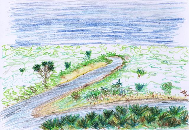 View  from Mainrestaurant  Kipini  Anassa Tana River Tanariverview Tana River Delta Tana Delta Dunes Lodge tana river delta dunes kenia delta dunes Kenya , Lodge on the dunes on the shore of Indian Ocean  Tana River Delta , Facing River and Ocean both Sides  Gemälde Zeichnungen  Skizzen Ölkreidezeichnung