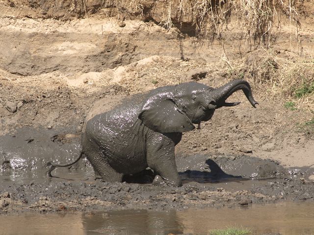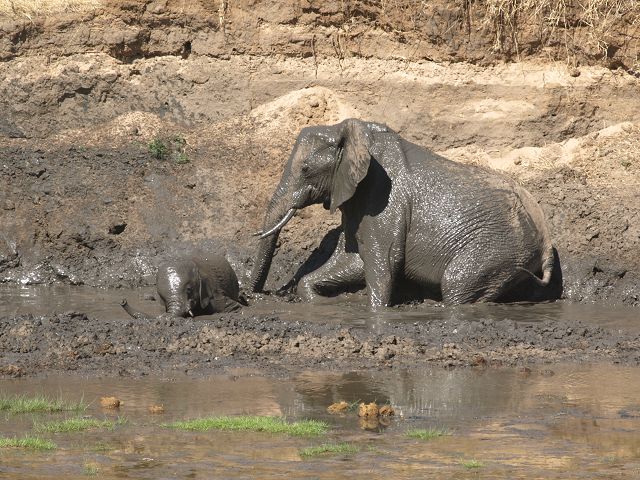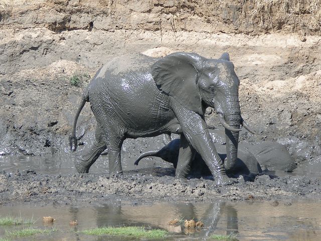 zurück Tembos von Tarangiere Nationalpark im Schlammbad Migrationsafari 2009