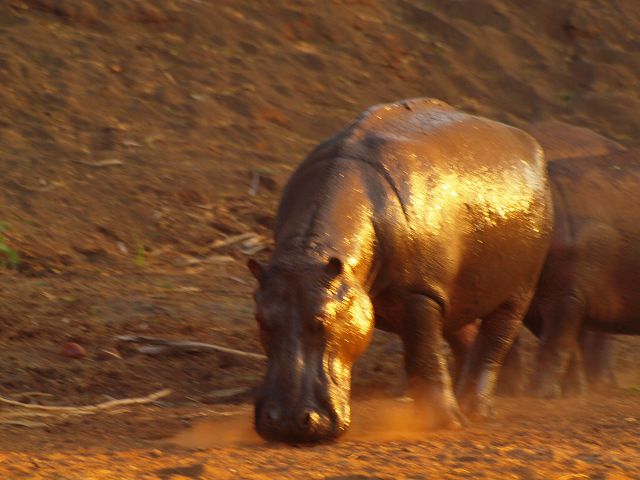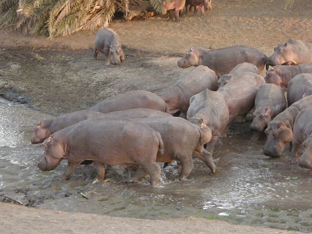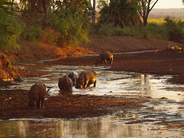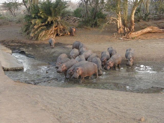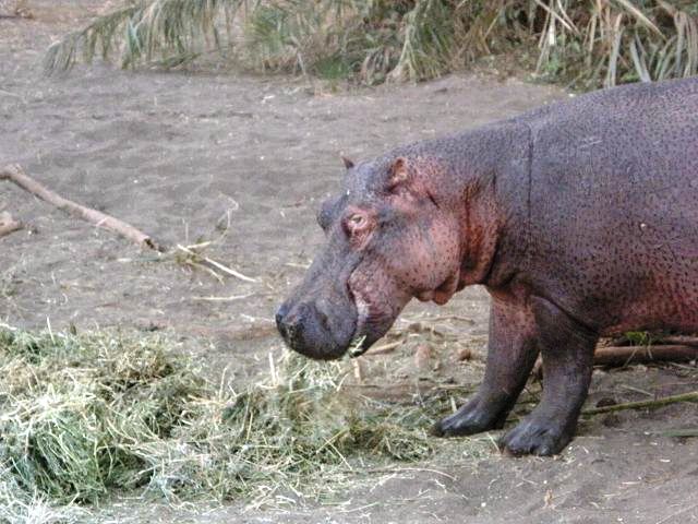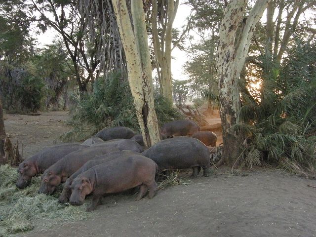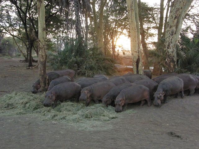 Hippo at tsavo   Punkt 18:15 gab`s Heu , wegen der Trockenheit Hippotime