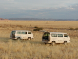 In den frühen Nachmittagsstunden startet ein 4x4-Fahrzeug der Namib