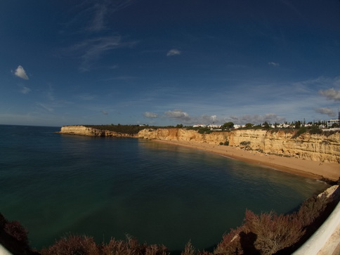 | Bis Faro schauen | Praia Rocha mit der Kapelle auf der Klippe |
