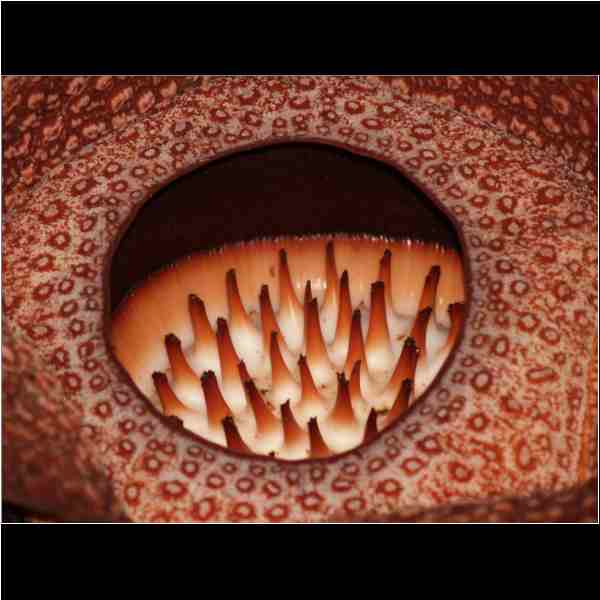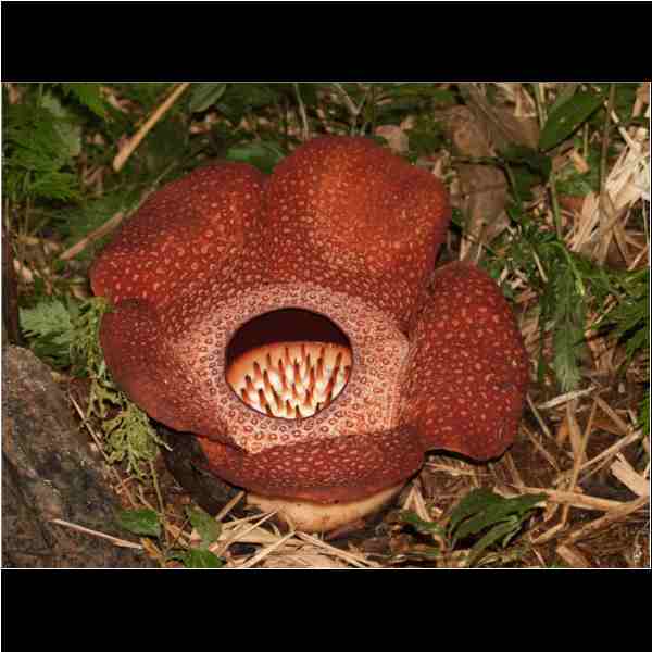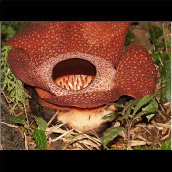 Wird von Fliegen bestäubt , die durch den Geruch von verwesendem Fleisch angelockt werden . 270000 Samen , davon sind nur 10-20 % fruchtbar und davon kann sich nur einer zur Blüte entwickel , wenn einer Verletzung an der Wirtpfanze der Liane ( Tetta stigma ) vorhanden ist. ( Verletzung an der Liane kann durch Blitz Sturm oderTiere verursacht werden ) Das Samenkorn setzt sich in der Wunde fest , und erst nach 2,5 Jahren entwickelt sich erst , davon ist aber nur 20 % Entwicklungchancen und aus der kleinen Knopse kommt dann nach 9 Monaten die Blüte ( von der Rafflesienart abhängig ) |