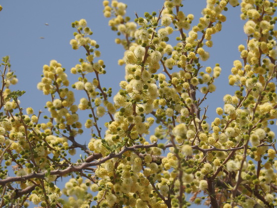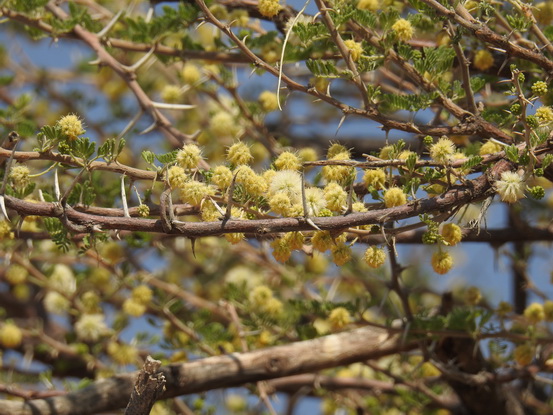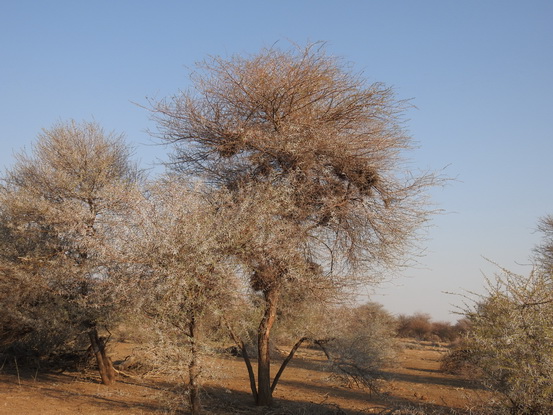 Look for their large, haystack-like nests in acacia trees or