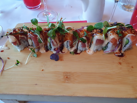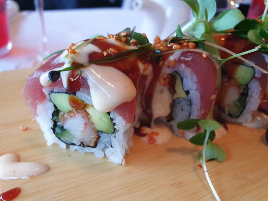 VEGI DELUXE ROLL 15.50 Spargeltempura, eingelegte Rote Bete, Gurke, Rote Zwiebeln Ceviche und Guacamole NEW CRISPY DUCK ROLL 16.50 krosse Entenfrühlingsrolle, Avocado, Gurke, Karotten-Kimchi Tempura und Wasabi-Hollandaise SEXY SALMON ROLL 17.50 Lachstatar, crispy Crabstick, Gurke, Avocado, creamy Tobikko und crunchy Stuff SURF AND TURF ROLL “BACK TO THE ROOTS” 19.50 mit gegrilltem Beefsashimi, Pankogarnele, Gurke, Avocado, scharfe Teriyakisauce und Sauerrahm CRISPY UNAGI ROLL 20.50 kross gebackene Rolle mit Unagi, Gurke, Avocado, TNT und Unagisauce MODERN CALIFORNIA ROLL 20.50 Tunasashimi, Scharf mariniertes Crabmeat, Gurke, Avocado, Chilimayonnaise und Teriyakisauce KINGS LEMON ROLL 21.50 gegrilltes Hamachisashimi, Gurke, Avocado, Zitruscreme und Ketakaviar |