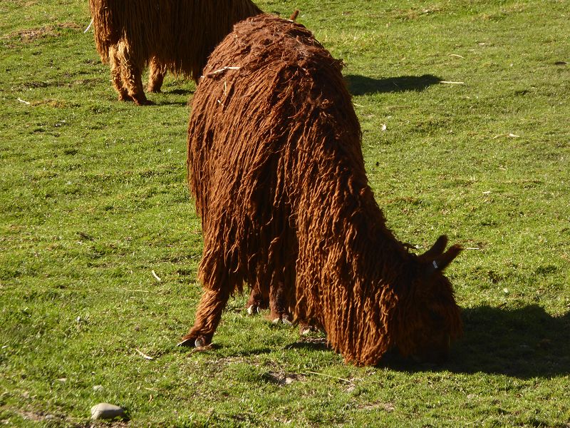 und ihre Wolle muss, im Gegensatz zu Alpakas, nicht regelmäßig