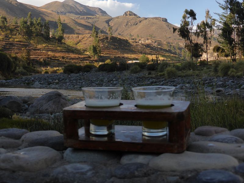 Colca Canyon Colca Colca Lodge Pisco Sour und Coca Sour am