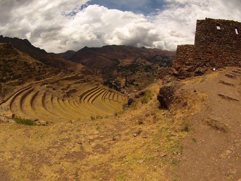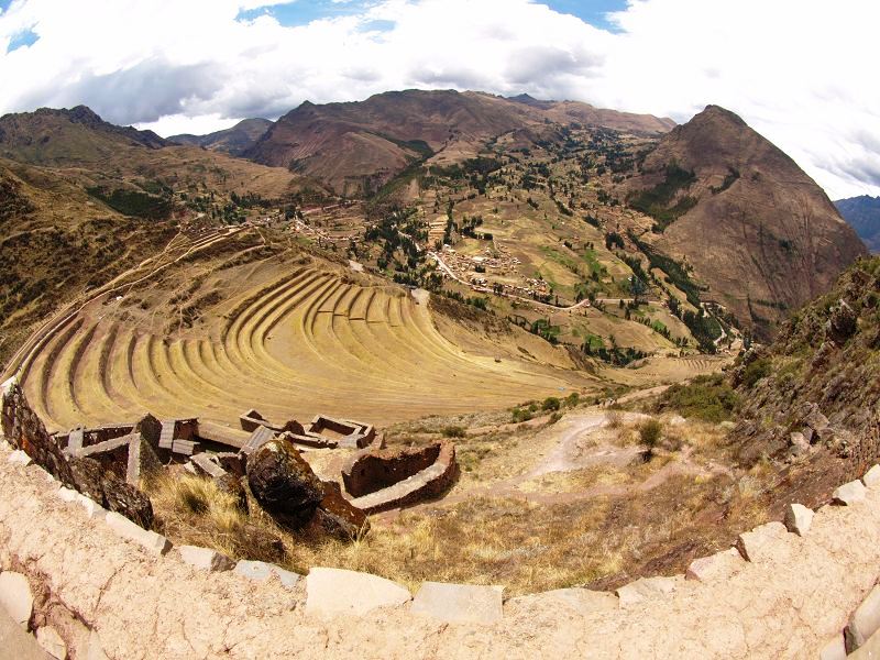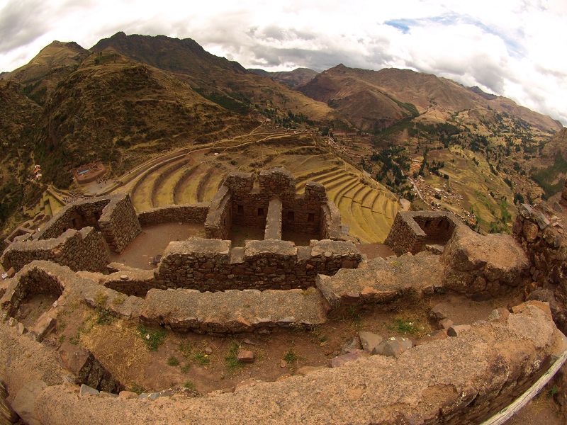 Valle Sagrado Pisaq Inca Pisaq  Stadt  und alte Bergfestung der Inka fisheyefotos