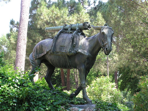 Besuchers vor dem Eingang zur Festung, steht auf einer Anhöhe der geliebte Maultier Es wurde 1940 von Canonica der Stadt Rom geschenkt und war seither drei Jahre zuvor modelliert und unterscheidet sich in seinem Geschirr von der Mulu von Biella. |