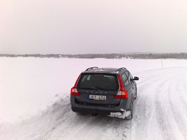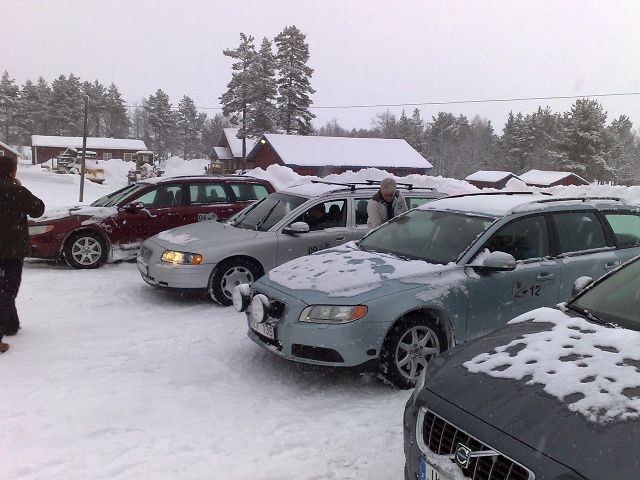 zurück Schweden Aurora Experience 2008 Erlköning Fahrertraining in Arjeplog jeweils 2 Fahrer auf V 70 mit Spikes auf dem See 50 cm dickes Eis