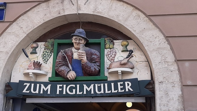 Donau Danube Vienna Altstadt Wien Figlmueller Restaurant mit Holztäfelung, Ziegelwänden und schmiedeeisernen Elementen sowie klassischer Wiener Küche. Figlmüller Bäckerstraße |