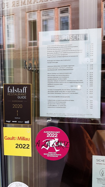 Rucola-Avocadosalat mit Rohschinken & Grana Padano € 13,20 Steirischer Backhendlsalat mit Kürbiskernöl € 13,50 Fischtatar aus Wagramer Lachsforelle mit Dillrahm & Toastbrot € 14,70 Mariniertes Rindfleisch mit LimeƩenmayonnaise & Rucolasalat € 14,20 Burrata auf mariniertem Spargelsalat € 14,80 Ziegenfrischkäse auf Wildkräutersalat mit Kürbiskernöl € 14,20 Rindsuppe mit FriƩaten oder Grießnockerl € 4,90 Spargelcremesuppe € 6,90 Gebackene Hühnerleber mit Erdäpfel-Vogerlsalat AsiaƟsch gebratenes „Chili Beef“ auf BlaƩsalat € € 12,80 17,10 Käse-Blunzenradln mit Rote Rübensalat & Kren € 12,90 Wiener Schnitzel vom Kalb mit Erdäpfelsalat € 22,40 Naturschnitzel vom Kalb mit BasmaƟreis € 22,40 Geröstete Kalbsleber mit Erdäpfelpüree € 18,60 Zwiebelrostbraten mit Braterdäpfel € 23,50 Gekochter Tafelspitz mit Apfelkren, SchniƩlauchsauce & G’röste € 19,20 Ausgelöstes Alt Wiener Backhendl mit Erdäpfel-Rahmgurkensalat € 16,90 Reisfleisch mit grünem Salat € 14,20 Rindsgulasch klein € 10,80 groß € 13,50 Tortelloni mit Spargelfülle, Brauner BuƩer, Grana & BlaƩsalat € 15,70 Marchfelder Spargel Cordon Bleu mit Sauce Tartare € 17,50 Marchfelder Solosopargel mit Brauner BuƩer, Grana & Petersilerdäpfel € 19,10 Gebratenes Zanderfilet mit SpargelrisoƩo € 24,00 Topfenknödel mit BuƩerbrösel, brauner BuƩer & Zwetschkenröster € 8,50 Hausgemachter Othello im Hemd € 7,50 Frische Erdbeeren mit Vanillerahm € 5,90 Kaiserschmarrn mit Marillenröster € 8,90 | Gasthaus Pöschl in der Weihburggasse 17. An einem der schönsten Plätze in ganz Wien. Telefon: +43 1 513 52 88 Öffnungszeiten: Montag-Samstag 12:00-23:00 Uhr Küche: Täglich bis 22:00 Uhr Sonn- und Feiertags geschlossen |