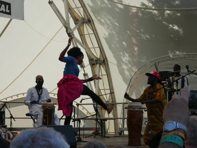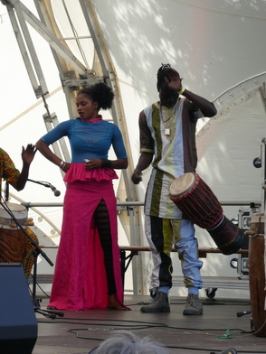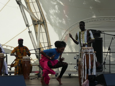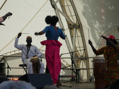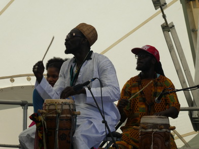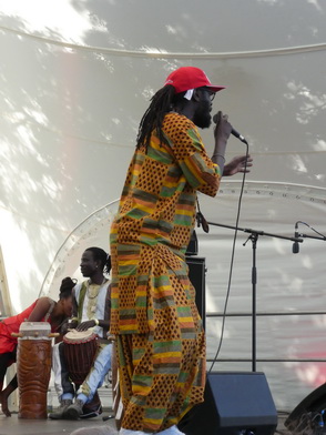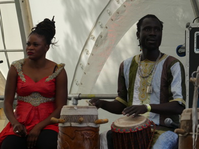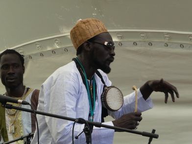 MOUSSA NDIAYEPERCUSSION FIRE FROM SENEGALSchon seit dem fünften Lebensjahr wurde Moussa Ndiaye in die hohe Kunst des Trommelspiels eingeweiht. Das Spielen der langen, einfelligen Sabar Trommel der Wolof beherrscht er daher genauso perfekt, wie die Talking Drum oder Djembé. International bekannte Musiker, z. B. Thione Seck, schätzen seine Fähigkeiten und laden ihn zu deren Tourneen ein. Mit seiner eigenen Gruppe „N´Guewel Begg Fallou Family“, die aus mehreren Sabar-Spielern und zwei Tänzerinnen besteht, wird er auf der Offenen Bühne ein wahres Percussion-Feuerwerk abbrennen |
