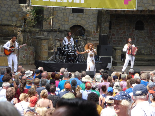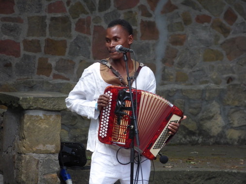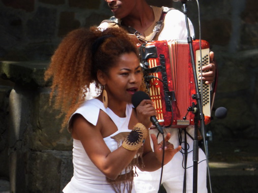 Eusébia (Madagascar) Eusébia's Ausbildung wurde auf der Bühne als Background-Sängerin und Tänzerin bei ihrem berühmten Vater Jaojoby, dem "König des Salegy-Stils", absolviert. Mit ihm trat sie in der ganzen Welt auf, 2000 und 2004 auch in Hertme. Im Jahr 2012 entschied sie sich für eine Solokarriere. Mit ihrem Debütalbum'Viavy gazy' distanzierte sie sich bewusst von den Einflüssen ihres Familienclans. Mit ihrem zweiten Album'Namako', das Ende 2016 erschien, setzt sich ihre künstlerische Emanzipation fort. Ihre Lieder handeln von Solidarität, Liebe, Nostalgie, aber vor allem singt sie laut und deutlich den Wert und das Wissen der madagassischen Frau. |