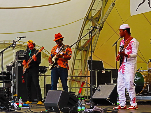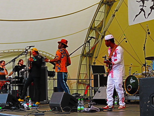 Moh Kouyaté ließ den Neuen Morgen tanzen! Guinean Moh Kouyaté präsentierte am 24. November 2017 am Neuen Morgen erfolgreich sein neues Album "Fétoki" auf der Pariser Bühne. Vor einem kosmopolitischen Publikum, das massiv präsent war, erhielt der exzellente Gitarrist und Bluesmann stehenden Beifall, sobald er auf der Bühne stand. |