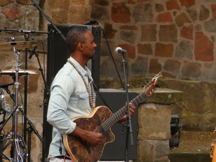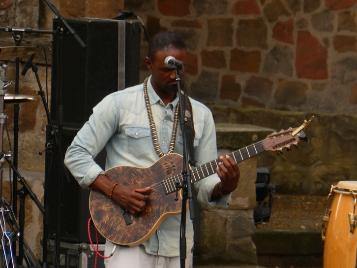 Miroca Paris Cabo Verde Island Rhythm Innovator jetzt mit Band In Hertme Der aus Cabo Verde und Portugal stammende Sängerin und Multiinstrumentalistin Miroca Paris Der kapverdische Sänger und Multiinstrumentalist Miroca Paris veröffentlichte 2017 sein Debütalbum D'alma ('Aus der Seele'). Doch er ist keineswegs ein Newcomer. Als Spross einer der bekanntesten kapverdischen Musikerfamilien ist er seit 20 Jahren ein fester Bestandteil des internationalen kulturellen Profils der Insel. Er war 11 Jahre lang Perkussionist des weltberühmten, inzwischen verstorbenen Cesarea Evora und hat auch mit Größen wie Sara Tavares, Mariza, Angelique Kidjo, Bitori, Bonga, Sona Jobarteh, Tcheka, Madonna und vielen anderen zusammengearbeitet. Vor einigen Jahren wagte er den Schritt, selbst Bandleader und Songwriter zu werden. Von da an begann er wieder Gitarre zu spielen und entwickelte auf der Grundlage seines umfangreichen rhythmischen Wissens seine eigene, einzigartige Gitarrenspieltechnik: progressiv, spielerisch, überraschend und frisch. Gleichzeitig entwickelte er eine warme und raue Stimme, die sowohl zu intimen Morna- als auch zu schnellen Funana-Rhythmen passt. Damit hat er bereits viele Festivalbühnen in aller Welt geziert, von Baku bis Berlin und von Montreal bis Moskau.. |