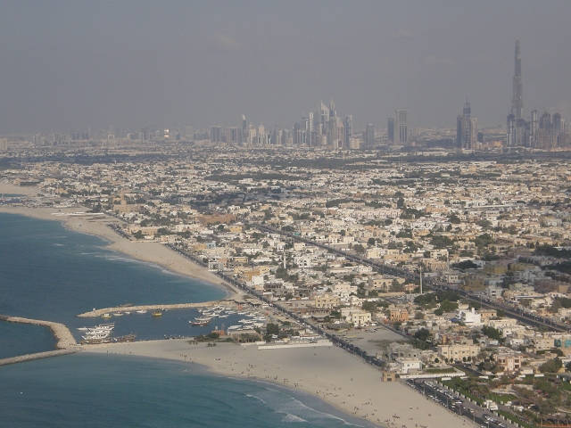 skyview restaurant View | Blick auf Dubai aus dem 27 Stock auf die U Boot station | |