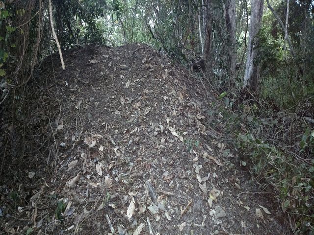 das Nest vom Orange-footed Scrubfowl Reinwardthuhn , der Wärme des Gärprozesse brütet die Eier Nest 4-5 m Durchmesser ca 1 m hoch aber auch bis 20 m und 4 m hoch . An der Küste gibt es teils Hügel, die fast nur aus Sand bestehen und nur durch Sonnenwärme erhitzt werden | Cairns Thala Beach Bushwalk Orange-footed Scrubfowl Reinwardthuhn Megapodius reinwardt) aus der familie der Grossfusshühner |