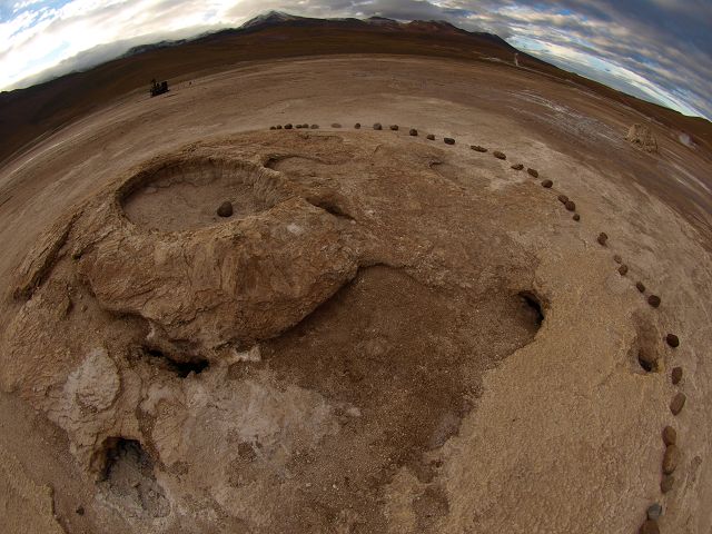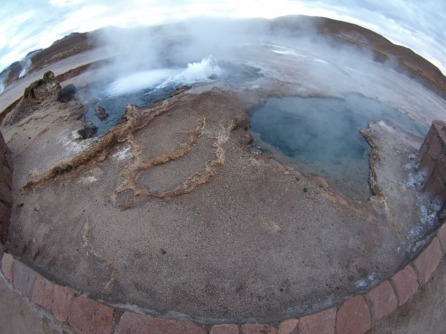 El TatioGeyser Feld (lokal alsLos del TatioGeiseres bekannt) in den Anden vonNorden Chiles bei 4.200Metern über dem mittleren Meeresspiegel gelegen, 150 Kilometer östlich, südöstlich von Calama, Chile. Mit mehr als 80aktive Geysire,ist El Tatio der größte Geysir-Feld in dersüdlichen Hemisphäre und das drittgrößte Feld in der Welt, nach Yellowstone, USA,Dolina und Giezerov, Russland. Von über 110ausbrechenden Quellendokumentiert, wurdenmehr als 80 als echteGeysire identifiziertund weitere 30 warenewigen Wasserspeier.Trotz Berichten, dass GeysirAktivität nurin der Früh kam, wurde keineVerminderung der Aktivitätzu jeder Zeit in jedemTeil des Feldes beobachtet.Obwohl die beobachtete Aktivitätwar kräftig, Ausbrüche häufig erreichtweniger als einen Meter. Des durchbrechenden Federn katalogisiert, betrug die mittlere speiendenHöhe 69 Zentimeter.Von den wahrenGeysire katalogisiert,die Eruptionen im Durchschnitt76 Zentimeter.Das El Tatio GeyserFeld enthält rund 8Prozent der Geysire der Welt ..