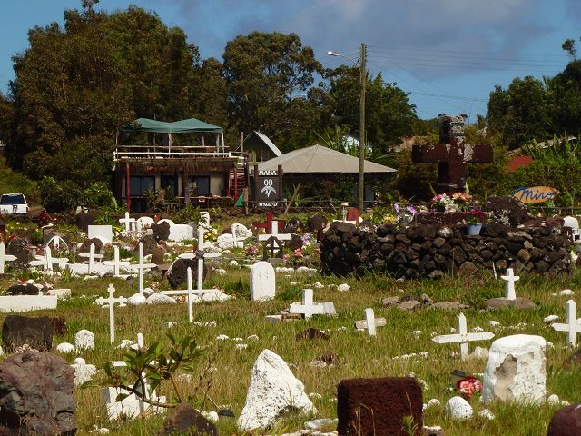 zurück Übersicht Rapa Nui Isla de Pascua Friedhof Cementery Cementerio Chile + Osterinsel - Rapa Nui papayatours