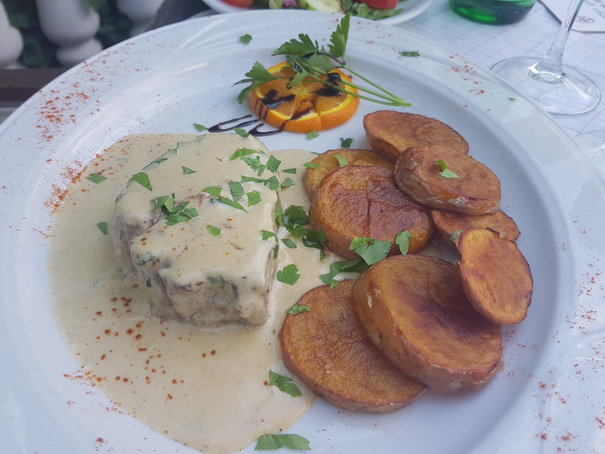 The combination of the juicy steak and the tangy, creamy sauce
