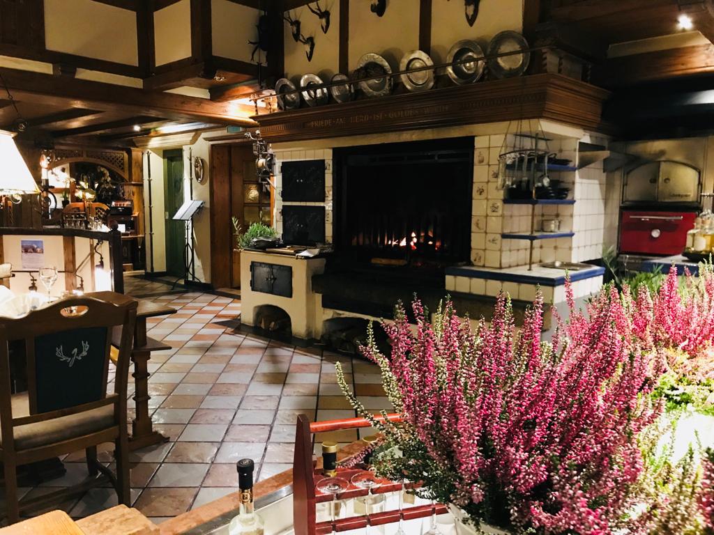 Jagdhaus Glashütte Zimmer des Kamin | Jagdhaus Glashütte Jagdhaus Glashütte Fischbüffet |