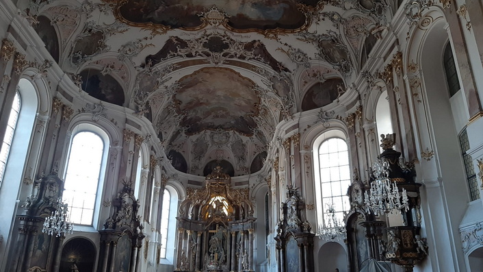 Bekannt ist St. Stephan vor allem für seine in Deutschland einzigartigen blauen Kirchenfenster, gestaltet von Marc Chagall. | |
