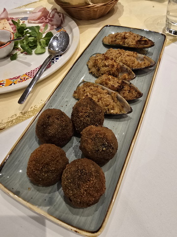 Arancino al Neo die Sepia und Muscheln Gratiniert | Carpaccio |