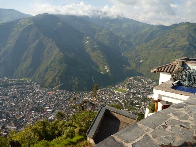 zurück Ecuador back Banos Adventure Spa in Luna Runtun der schönste Blick auf Banos am Fuße des Tungurahua