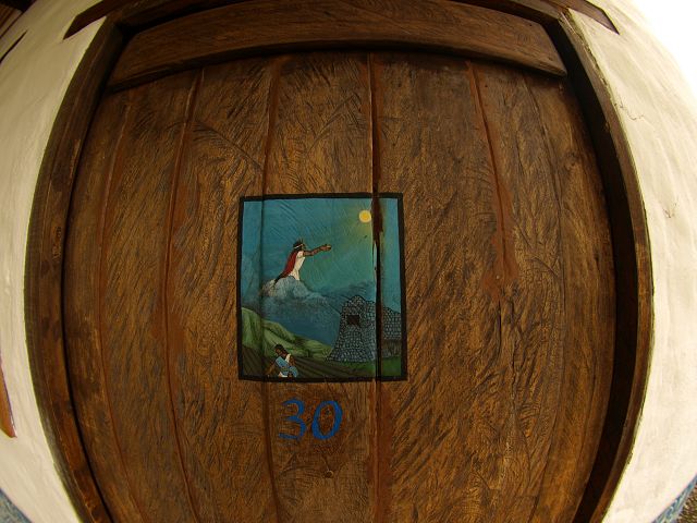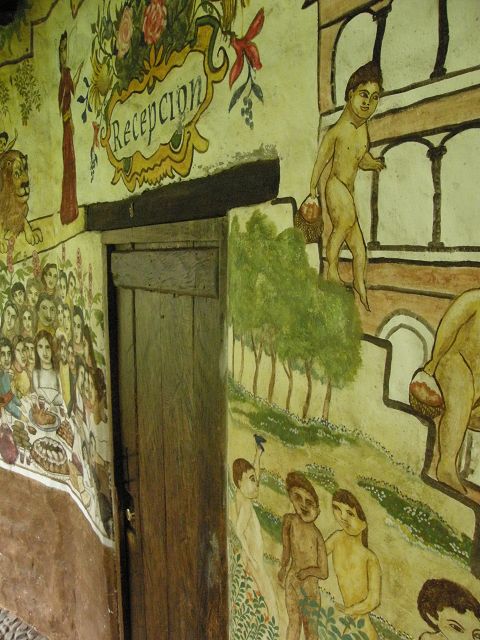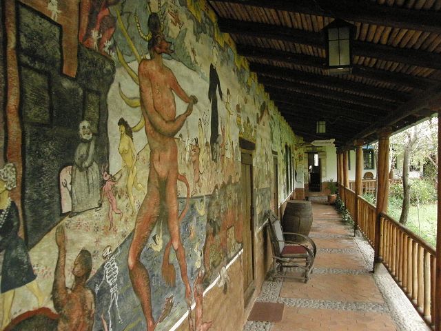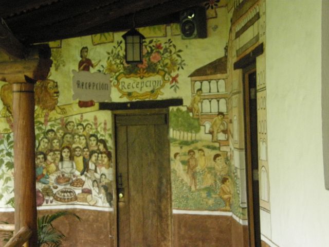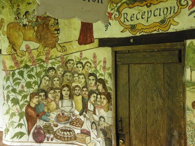 Cotacachi, der von einem großen Holzfeuer und farbenfrohen Wandmalereien