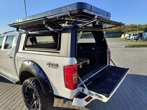 Standardausrüstung Level One Park-Assistent in der hinteren Stoßstange Außenstange mit Haken zur Ladungssicherung Sicherheitsrahmen zwischen der Heckscheibe und den Frachtraum Mechanisch abschließbar hintere Differential Lederausstattung mit durchschnittlich Sitze mit perforiertem Leder TPMS - ein System zur Überwachung des Reifendrucks Electro chromatischen Rückspiegel Chrom-Türgriffe Heckscheiben elektrisch einstellbar Sitzheizung vorn |
