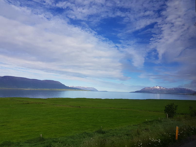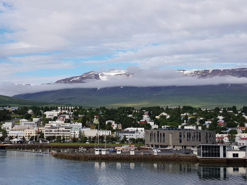 des Fjords Eyjafjördur im Norden Islands. In der Stadtmitte befindet