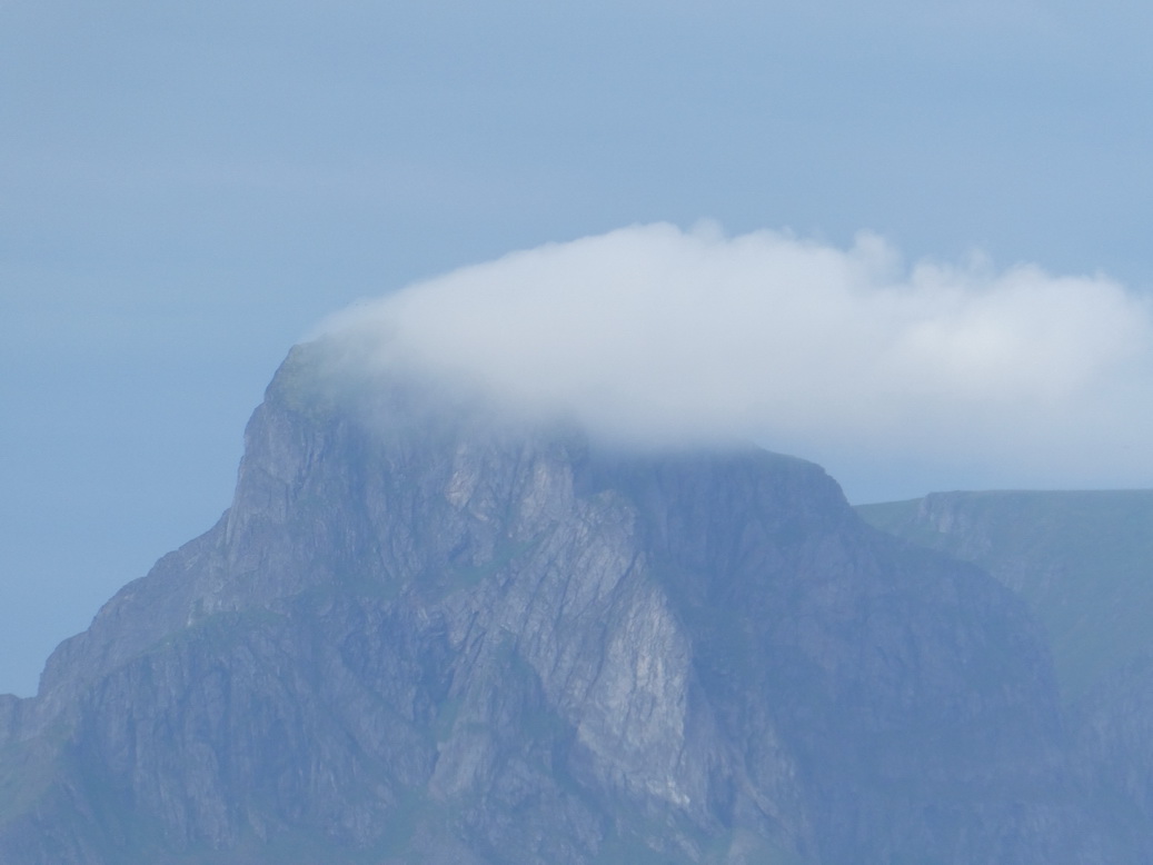 Gravdal Leknes Norway Lofoten smoky mountain mit Wolke |
