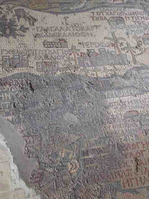 Antike Weltkarte Bodenmosaik Palästinakarte in der gr.-orthodoxen Kirche des hl. Georg